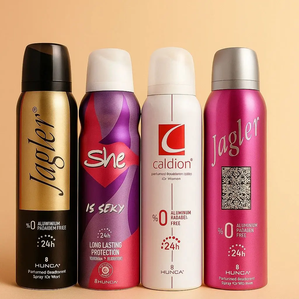 اسپریهای بدن Hunca محصول کشور ترکیه، ترکیبی از عطرهای ماندگار و فرمولاسیون بدون آلومینیوم و پارابن هستند که طراوت و اعتمادبهنفس را در تمام طول روز حفظ میکنند.این مجموعه شامل چهار رایحه محبوب است:Jagler for Men با عطری گرم و مردانه،She …is Sexy با رایحهای شیرین و اغواگر،Caldion for Women با بویی تمیز و گلی،Jagler for Women با عطری لطیف و زنانه.همه این اسپریها با تکنولوژی محافظت ۲۴ ساعته طراحی شدهاند و برای استفاده روزانه، بعد از دوش یا پیش از خروج از خانه ایدهآل هستند. خرید مجموعه اسپری بدن هونکا از ژوبینو، تجربهای از ماندگاری و کیفیت اصل ترکیهای را به شما هدیه میدهد.